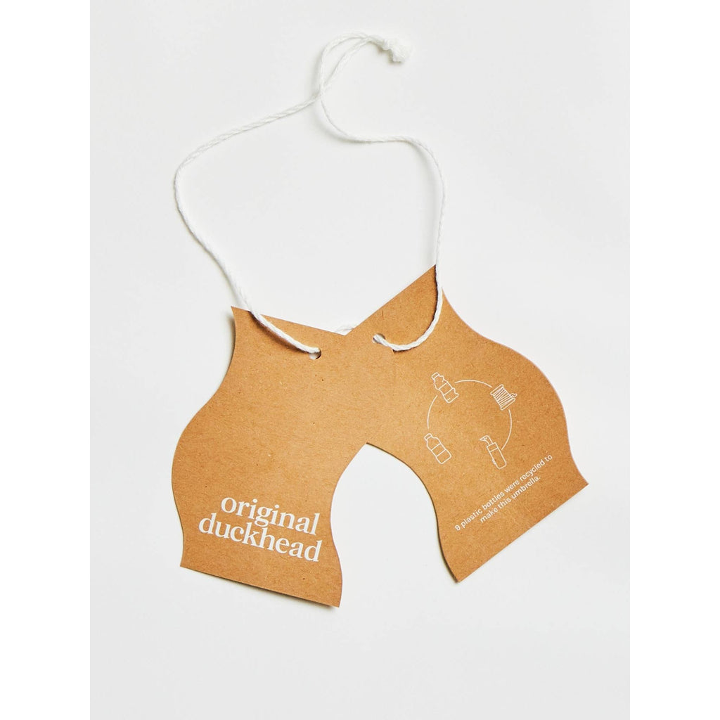 Each canopy is made using 9 recycled plastic bottles, transforming post-consumer waste into a premium, water-resistant rPET fabric. The iconic duck-head handle is carved from one solid piece of sustainably sourced birch wood, giving every umbrella a unique natural grain and finish.