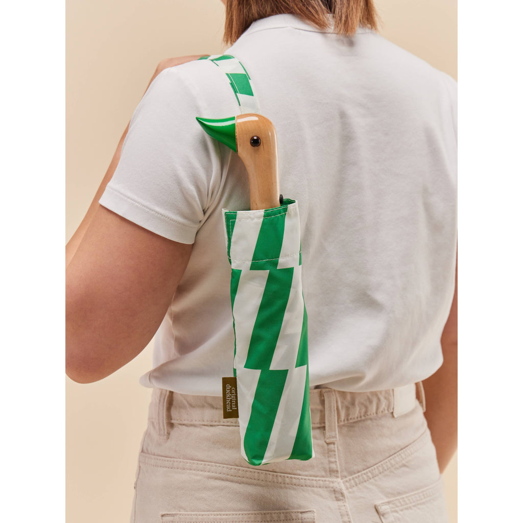 The iconic duck-head handle is carved from one solid piece of sustainably sourced birch wood, giving every umbrella a unique natural grain and finish. No two handles are exactly alike.