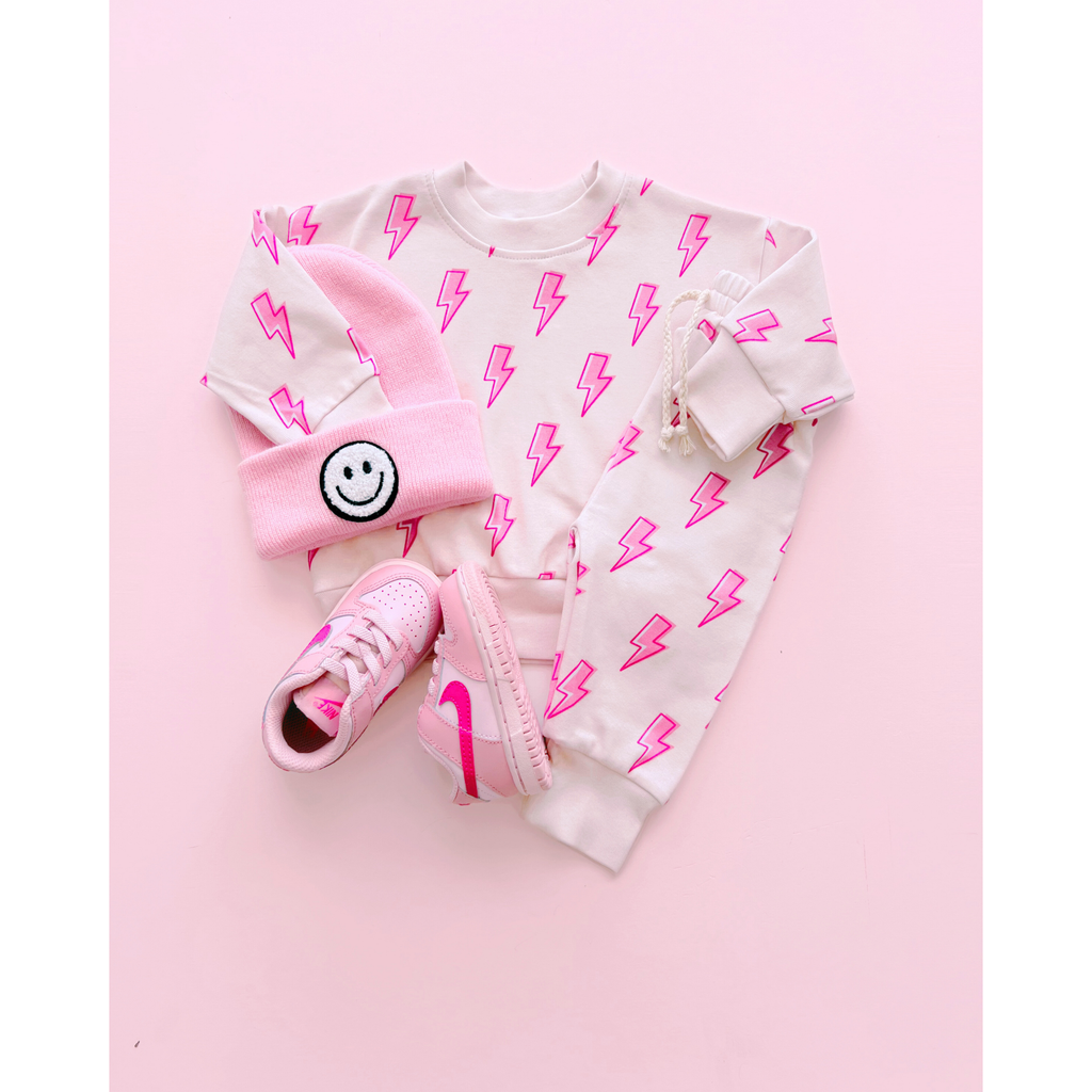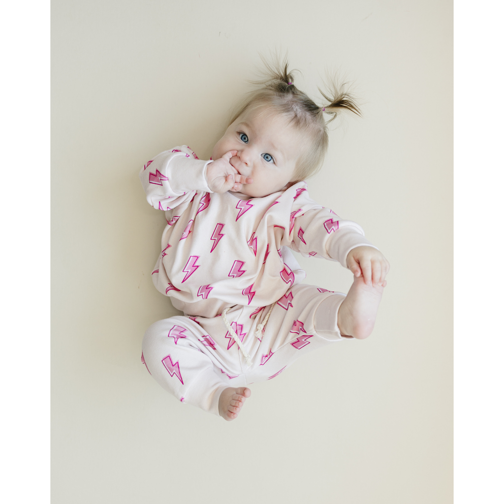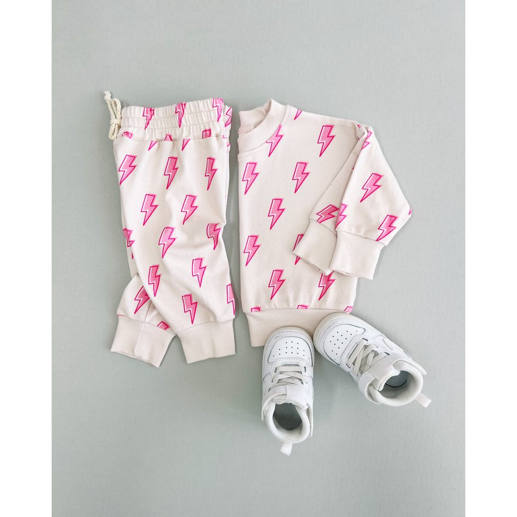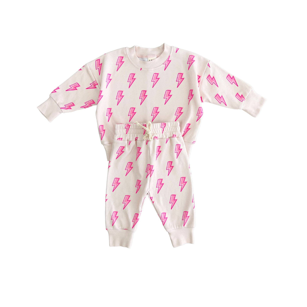 * Premium Fabric: Smooth, soft, and made to last. Retains shape and comfort wash after wash. * Fabric Composition: 95% Cotton and 5% Spandex for a soft, flexible feel that moves with them. * Fit: True to size with a relaxed, comfortable cut. * Pants: Elastic waistband for easy wear and a secure, comfy fit. Cuffed ankles provide a clean, finished look. * Long Sleeve Top: Designed with a classic, relaxed fit that allows for easy movement and everyday comfort. * Faux Drawstring: A stylish detail at the waist without added bulk. * Everyday Daywear: Perfect for cooler days, whether lounging, at school, or out for casual activities. * Care Instructions: Cold wash with colors. Tumble dry on low or hang dry.