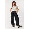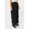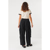 Straight cut cargo pants with hand pockets and large side patch pockets. Front zip closure.