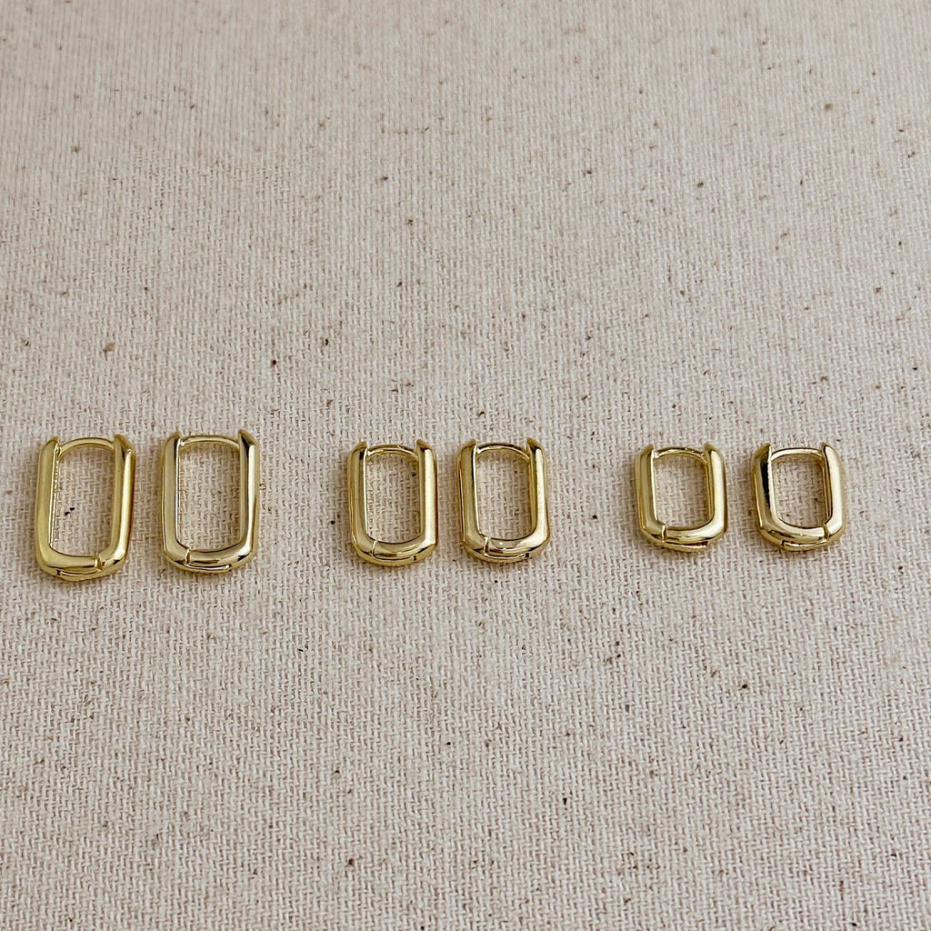 18k Gold Filled Oblong Hoop Earrings: 15mm