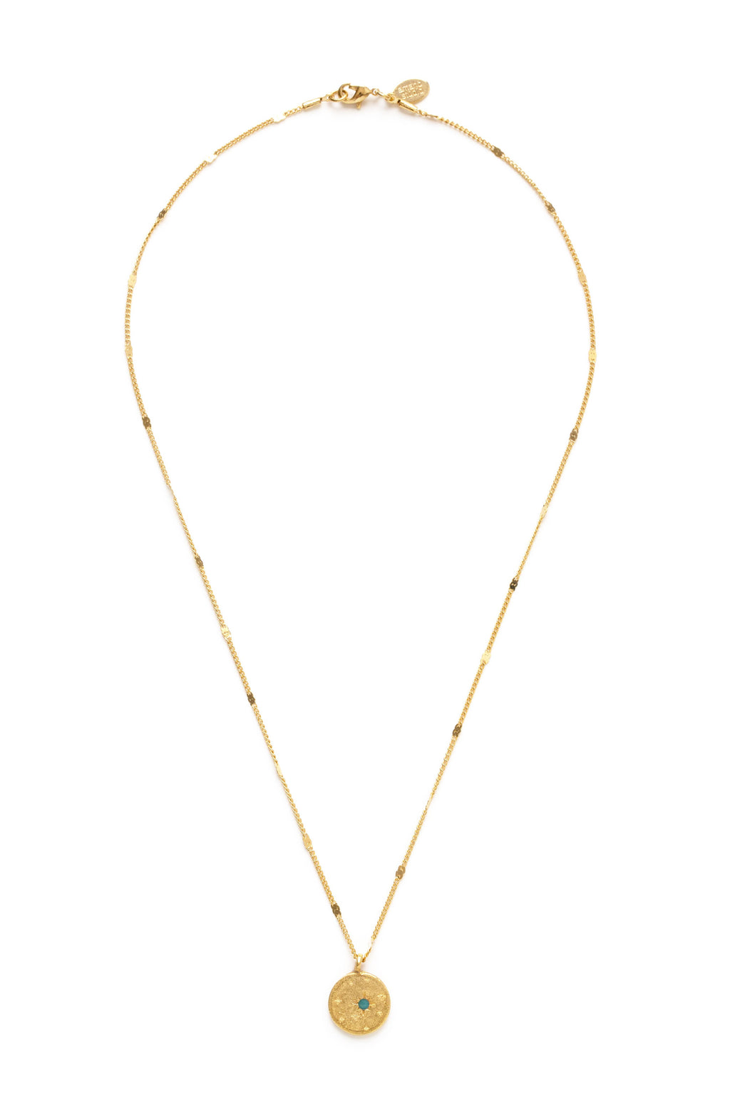 A little constellation of stars to wear around your neck. Matte 14k gold over brass with a sweet little turquoise crystal. Chain is 18". Designed and assembled in Amano's California studio.