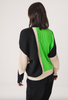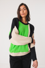 Loose fit, multicoloured knit sweater. Midweight with batwing sleeves and round neck.