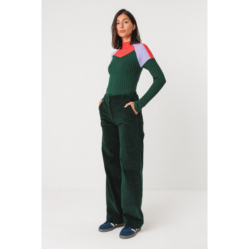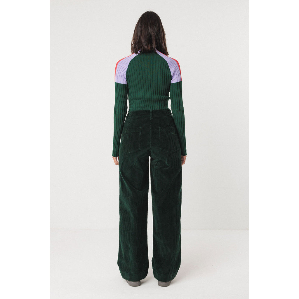 Straight leg, ankle length corduroy trousers in GOTS certified organic cotton. They have slant pockets and a zip fly at the front and patch pockets at the back.