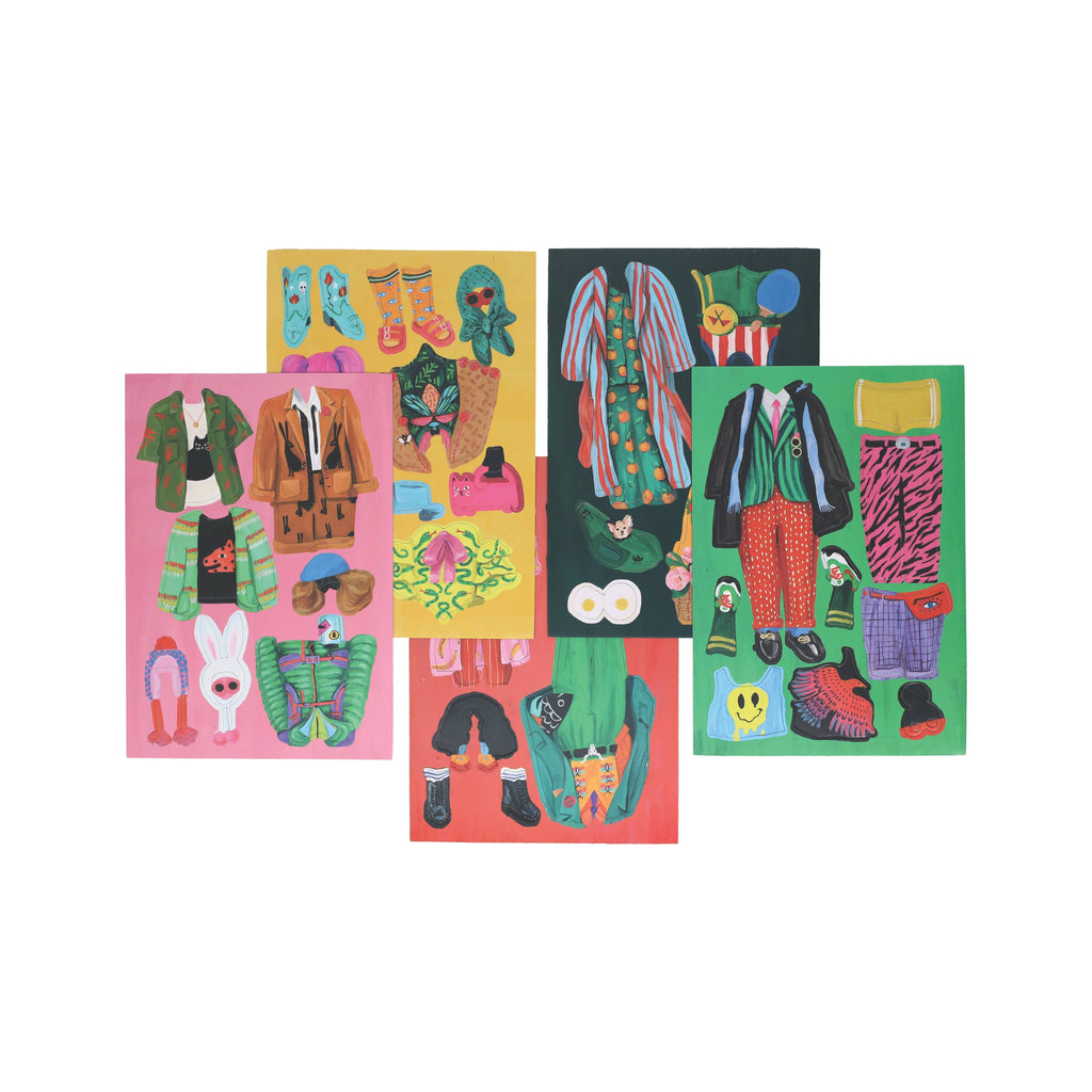 This fun, fabulous, and effortlessly fluid mix-and-match magnetic dress-up doll set puts the power of fashion in your hands. Housed in a delightful portable box, the set includes four dolls and forty-eight interchangeable outfit pieces. The stylish separates include artfully illustrated gorpcore jackets, botanical print robes, dapper suits, couture capelets, and more. Each daring ensemble fits all four dolls and can be paired with accessories, shoes, hats, wigs, purses, and pet dogs to complete the look. Dress these dolls to express your funkiest fashion fantasies! MAGNETIC DRESS-UP DOLLS: Celebrate the playful, transformative power of fashion with this gorgeous set of magnetic paper dolls.