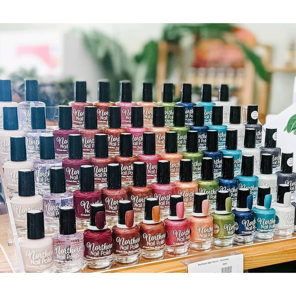 Northern Nail Polish: ~ Non-toxic ~ Natural, Vegan Ingredients ~ Cruelty-Free Formula ~ Chip-resistant & Long Lasting ~ Non-staining, Easily Removed ~ Great Customer Service ~ Handmade in Michigan Environmentally friendly, no harmful chemicals, eco natural self-care and pampering.